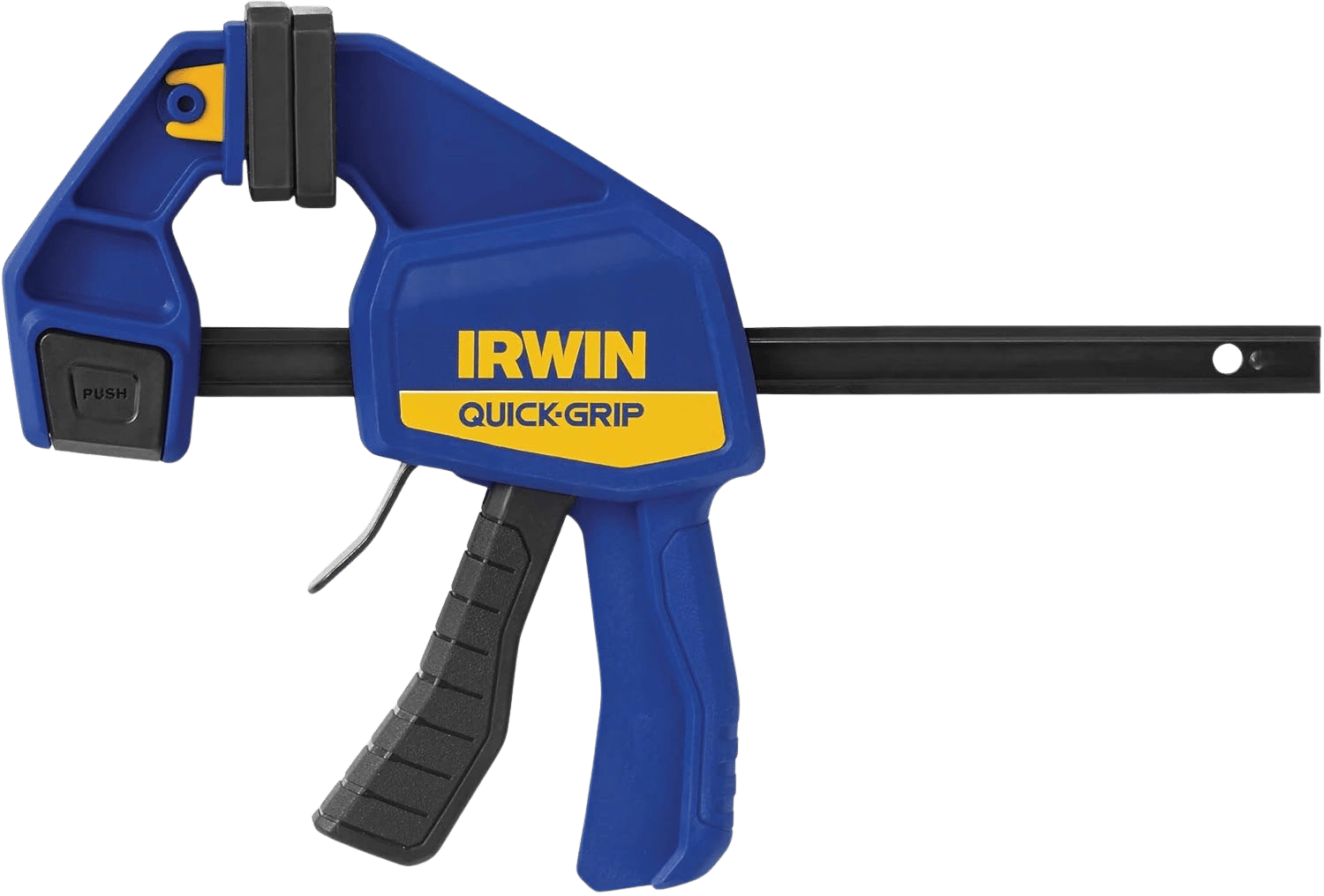 The IRWIN Quick-Grip has been the industry standard for one-handed bar clamps for decades. 300 lbs of clamping force, converts to a spreader with one button, and the pads actually stay on (unlike the Harbor Freight versions). At $9.99, buy four.